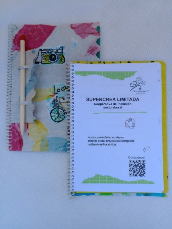 Nuestras agendas están hechas en una cooperativa que crea oportunidades de trabajo para personas con discapacidad. Cada compra nos ayuda a seguir fortaleciendo un espacio inclusivo y a cuidar el ambiente mediante el uso de materiales reciclados.