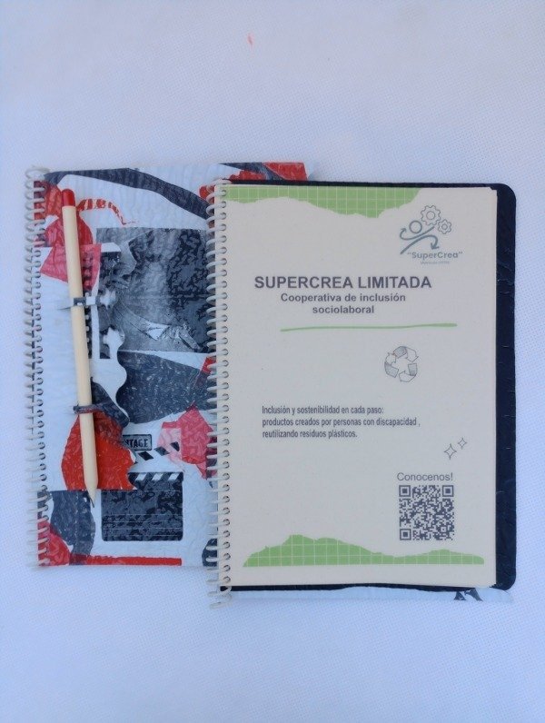 Nuestros cuadernos están hechos en una cooperativa que crea oportunidades de trabajo para personas con discapacidad. Cada compra nos ayuda a seguir construyendo un espacio inclusivo y a cuidar el medio ambiente usando materiales reciclados.